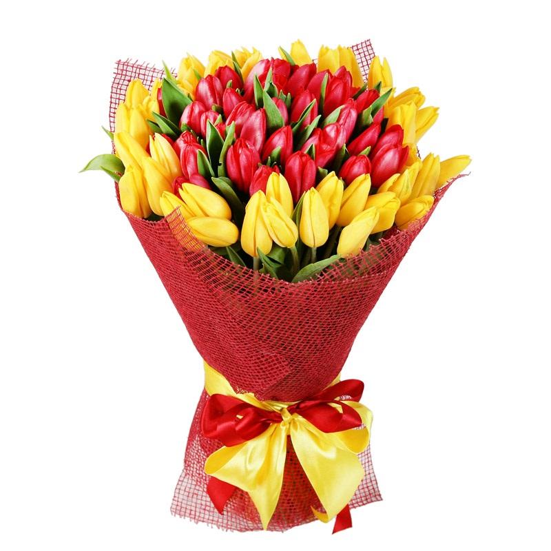 Букет из 51 тюльпана (красные и желтые)